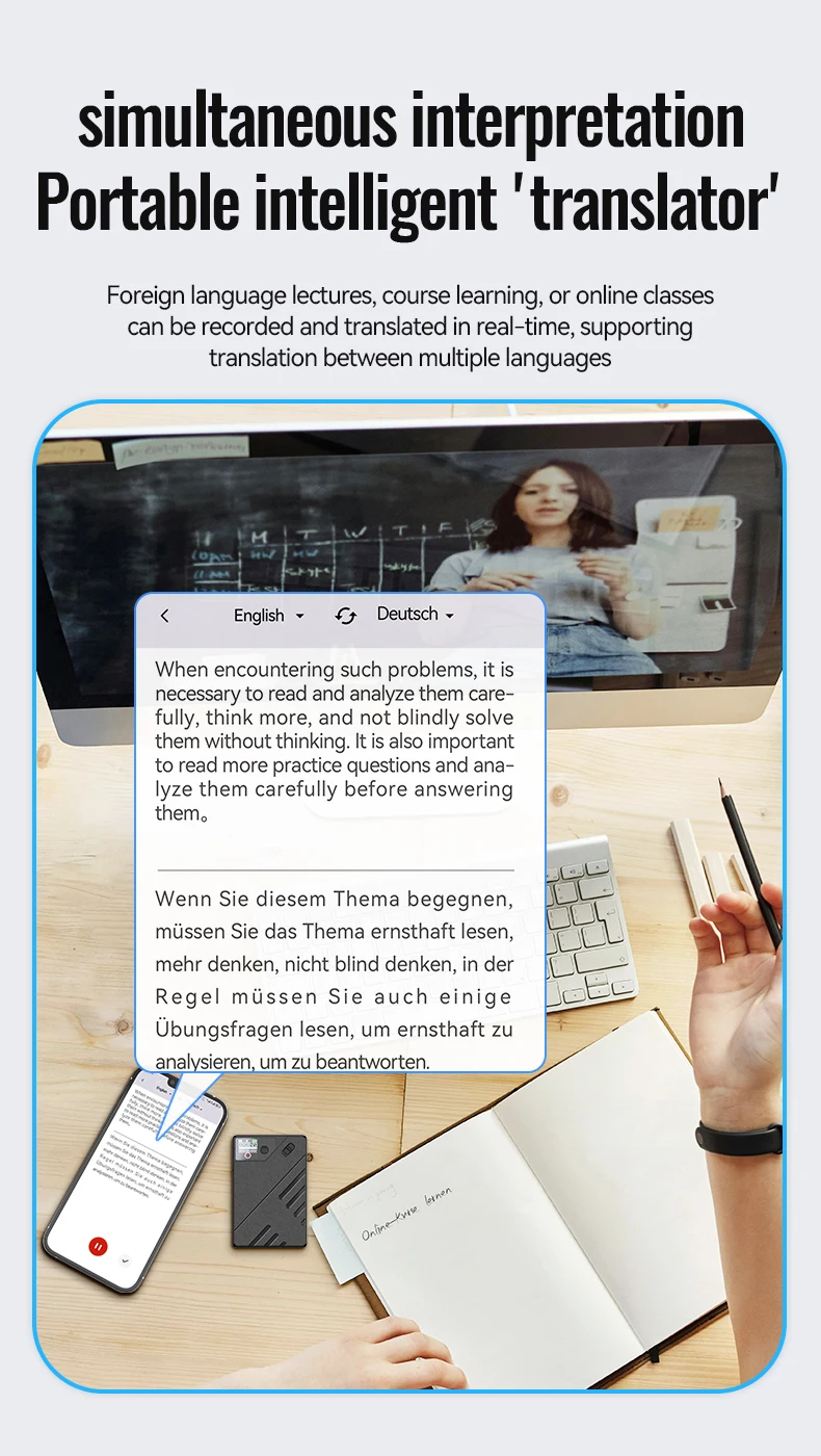 **Simultaneous Interpretation**: A portable intelligent 'translator' that supports real - time translation between multiple languages. Whether you're attending a foreign language lecture or an international online class, language barriers are a thing of the past. It supports 60 languages, catering to a wide range of language needs.